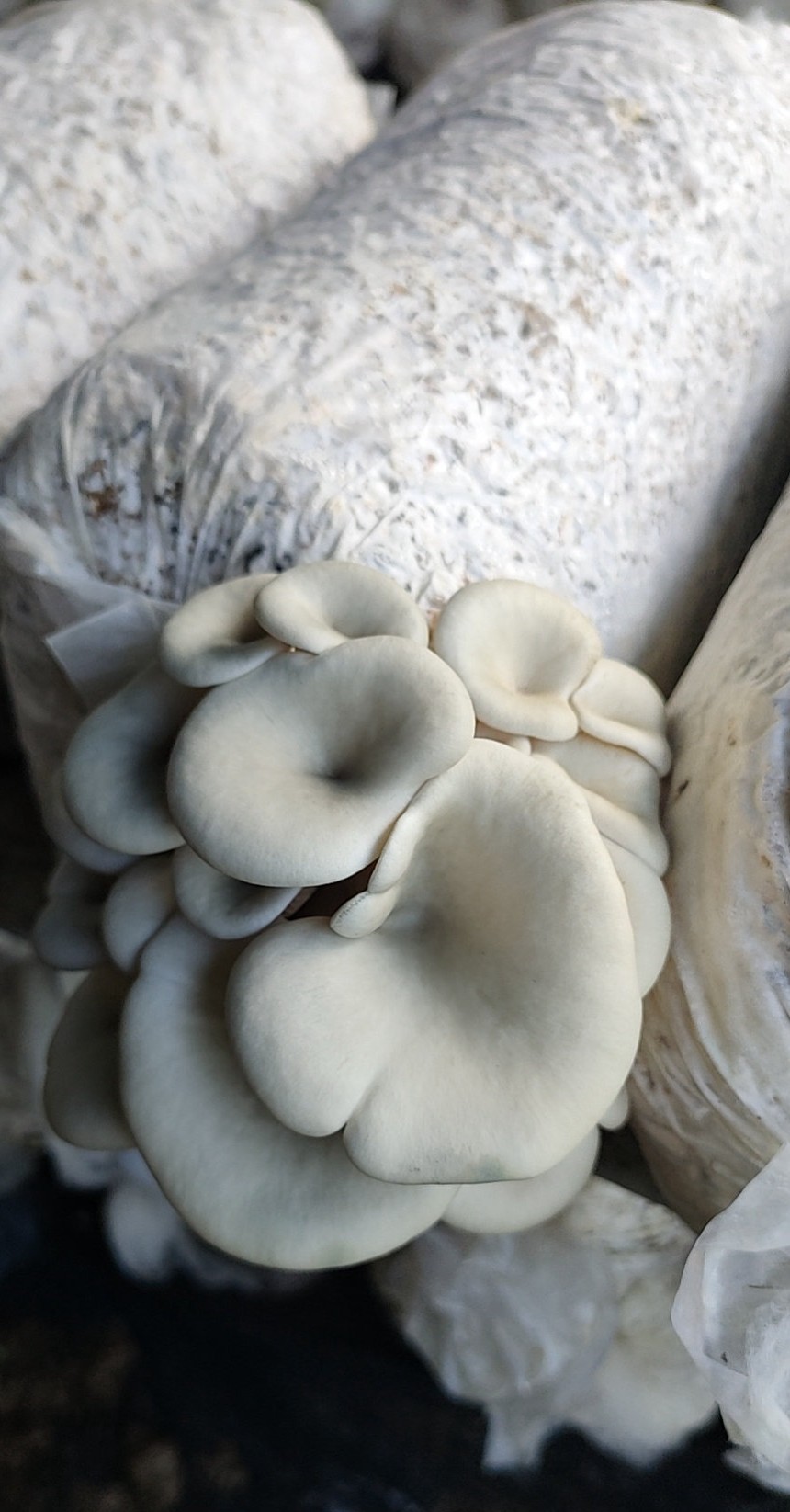 - **空气调控**:秀珍菇栽培对其生长环境的空气有特殊要求。为提高商品菇的柄长,需提高小棚内的二氧化碳浓度。可采用蔬菜大棚塑料薄膜覆盖小棚的方式来实现其生长环境要求。通过掀动薄膜来调控不同生长时期的空气流通。在原基分化成小菇蕾前结合喷水适当通风,形成小菇后每次喷水结束不要马上盖下棚门,让其通风0.5小时左右。当菇柄长至3-4厘米时,应掀开两头的棚门让其自然通风,使菇由纤细向粗壮生长。
